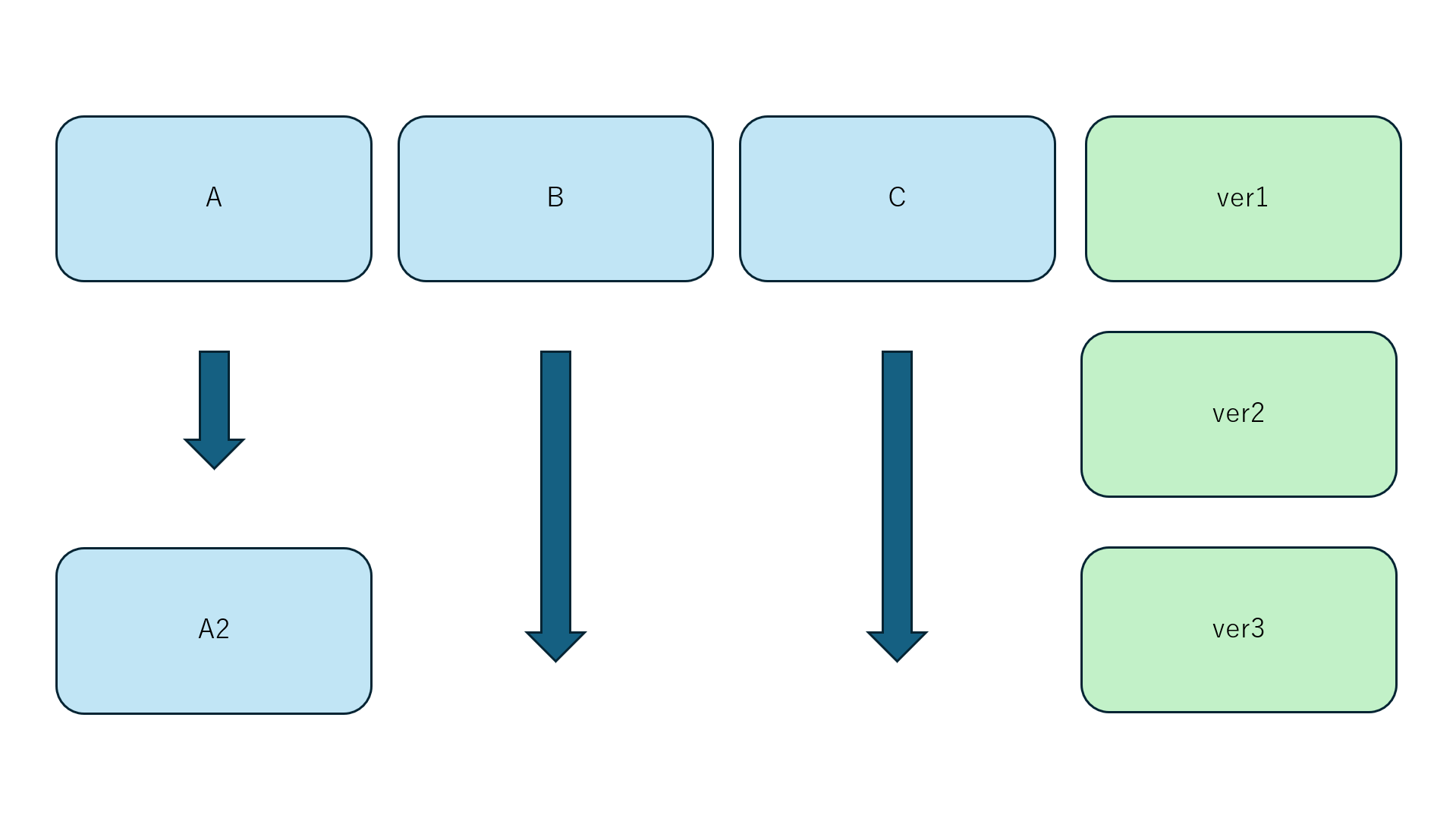 2回目:Aだけ変わったら、BとCは前と同じものを参照する