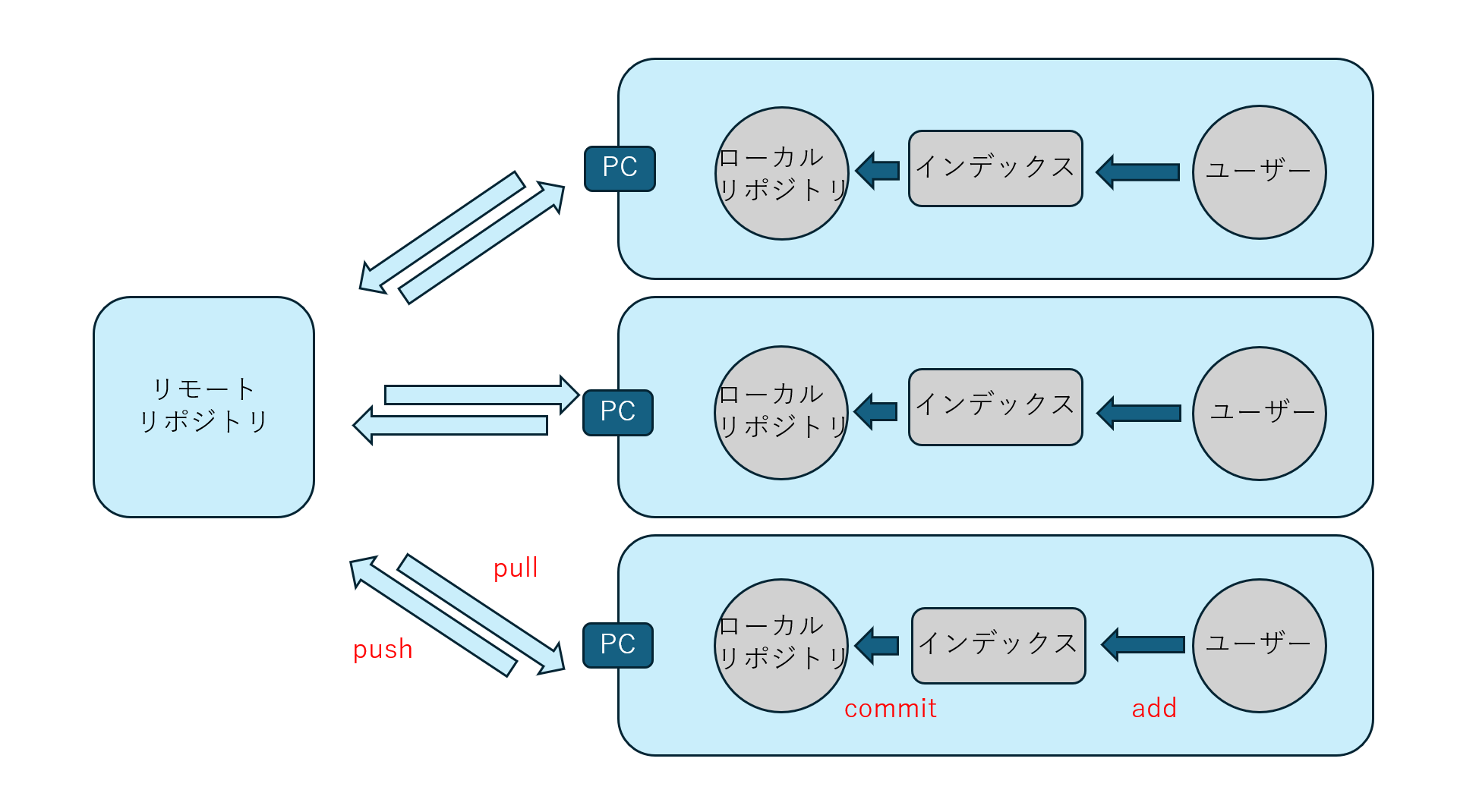 Gitコマンドは、基本的にこのローカルリポジトリーを操作します