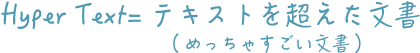 Hyper Textとは「テキストを超えた文書」という意味で、1974年にアメリカの学者テッド・ネルソンが「Computer Lib」で提言した概念です。
